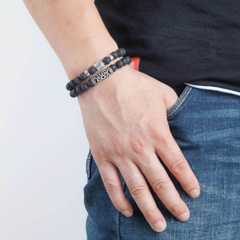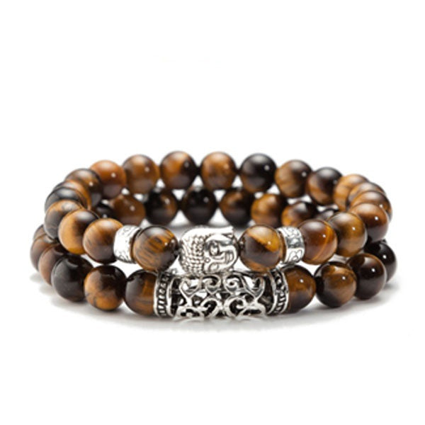 2 pcs Tiger Eye Lava Stone Beaded Bracelets