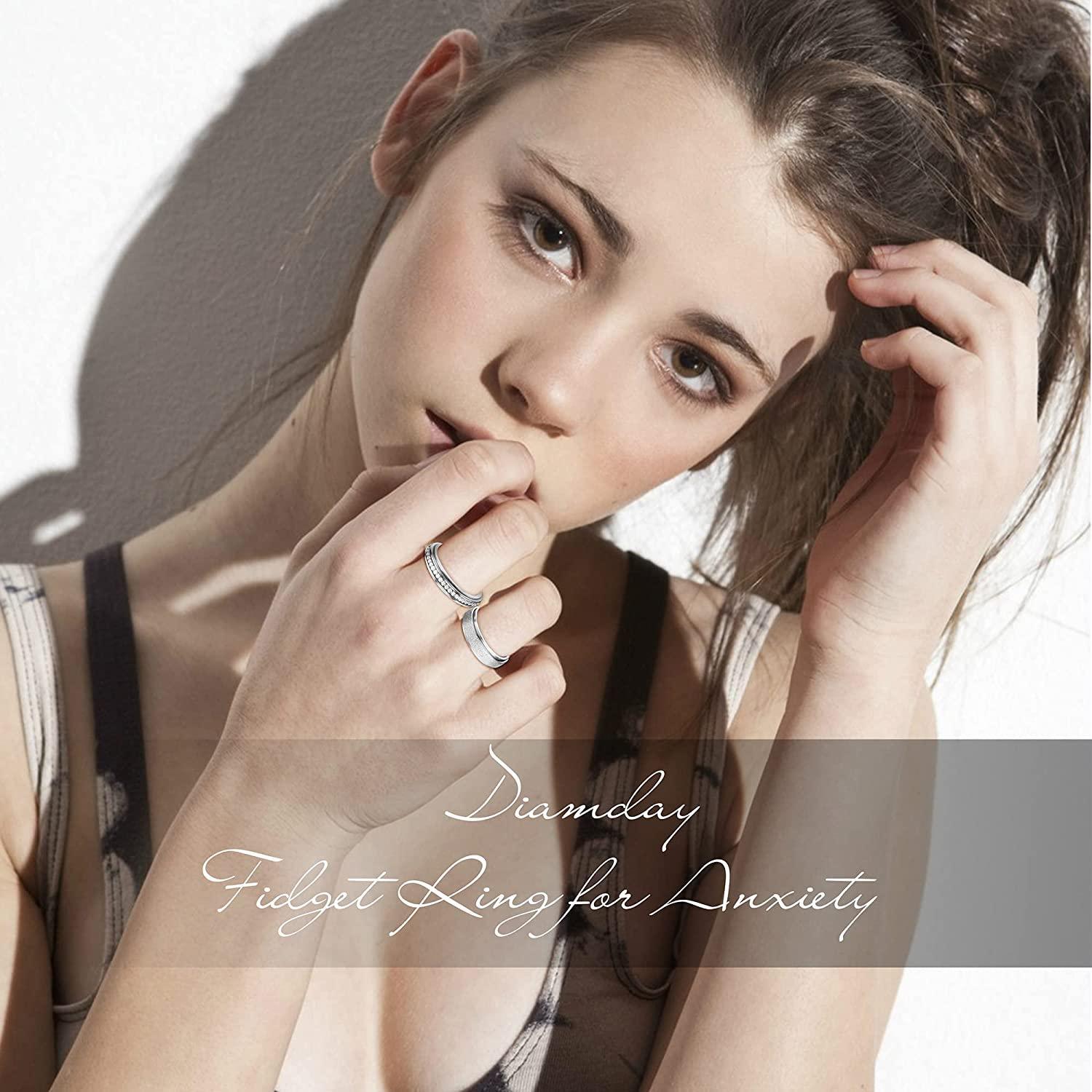 [ PREMIUM MATERIAL ] - Spinner fidget ring is made of high quality 316L stainless steel and AAA+ cubic zirconia; lead and nickel free. Hypoallergenic rings not turn skin green; solid and durable. High polished and shiny smooth surface; comfortable to wear. Perfect size fits your finger. Fidget anxiety rings make no noise when it rotate; don't worry about it disturbing people around you.