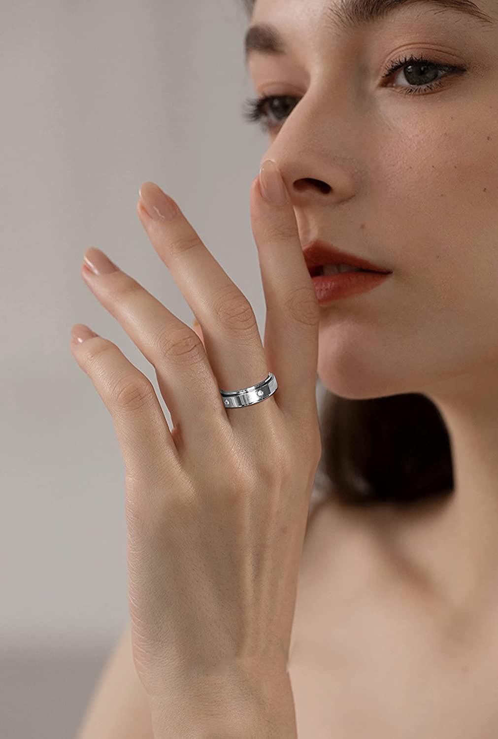 [ FIDGET RINGS FOR ANXIETY ] - Unique spinner ring design; anxiety ring for women help you relief stress; ruduce anxiety and improve your mood as fun fidget toy. Perfect for anyone looking for anxiety reduce; stress relief; focus or redirect bad habit like picking fingers and biting nails when at work; school; meeting or meditation. Cool and fashion; fidget band rings can made promise rings; matching couple ring; wedding ring; engagement ring or daily band rings.