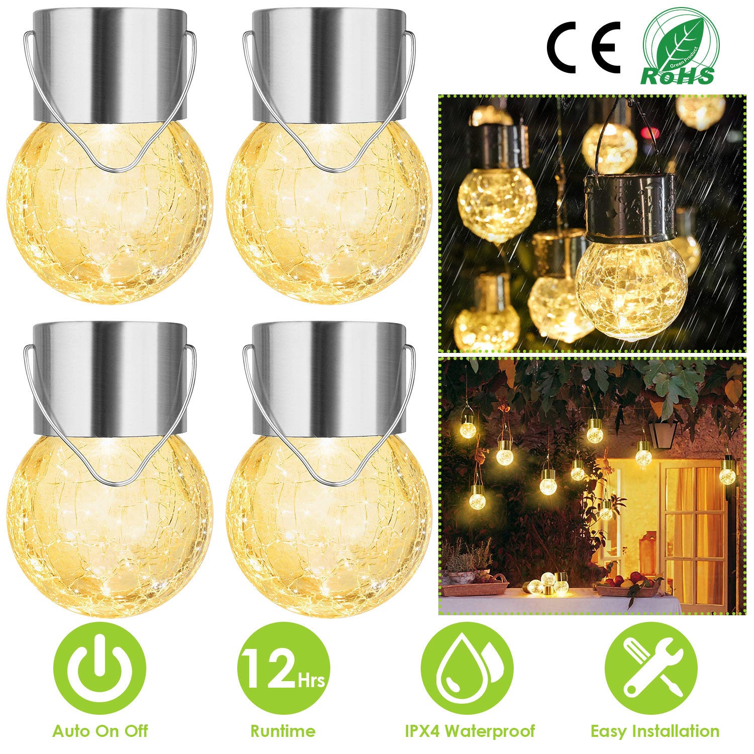 4Pcs Solar Powered Hanging Crystal Ball Lights Outdoor Waterproof