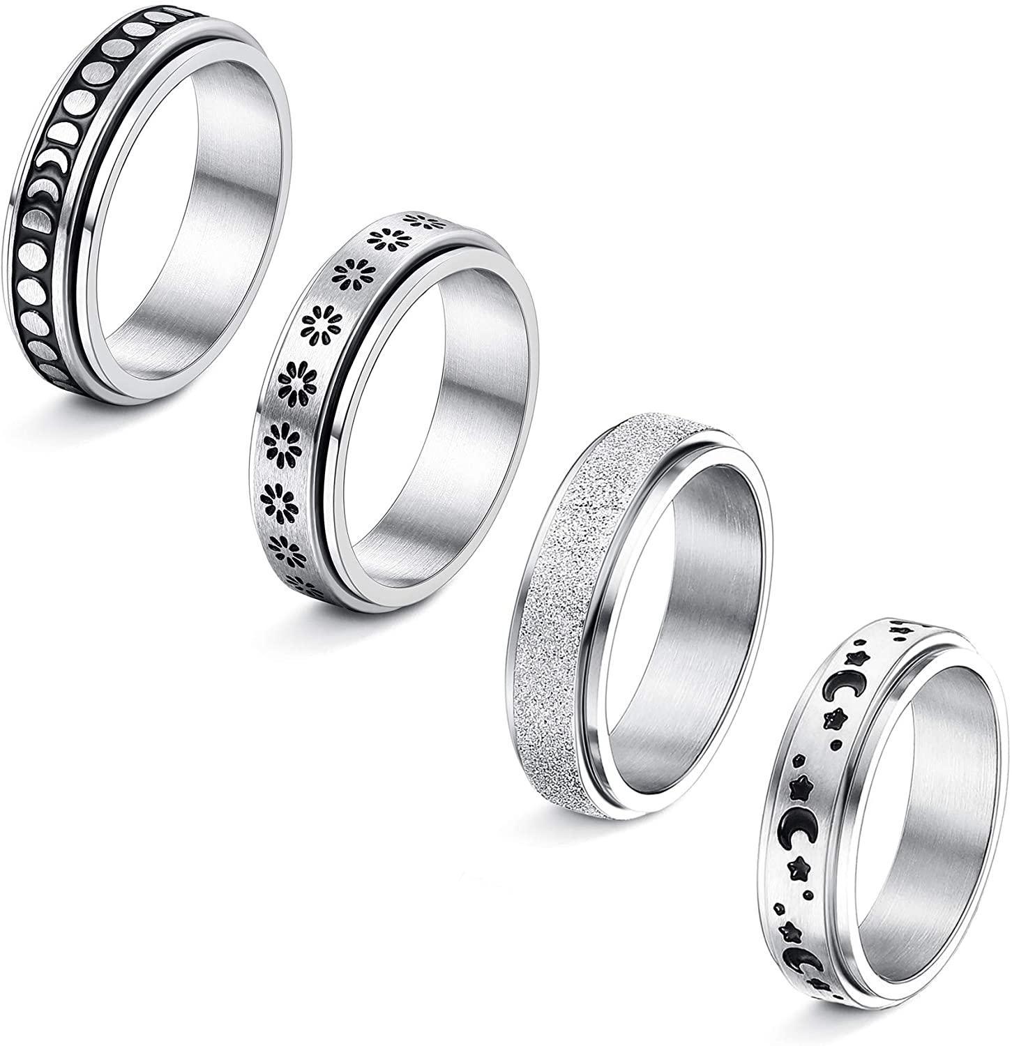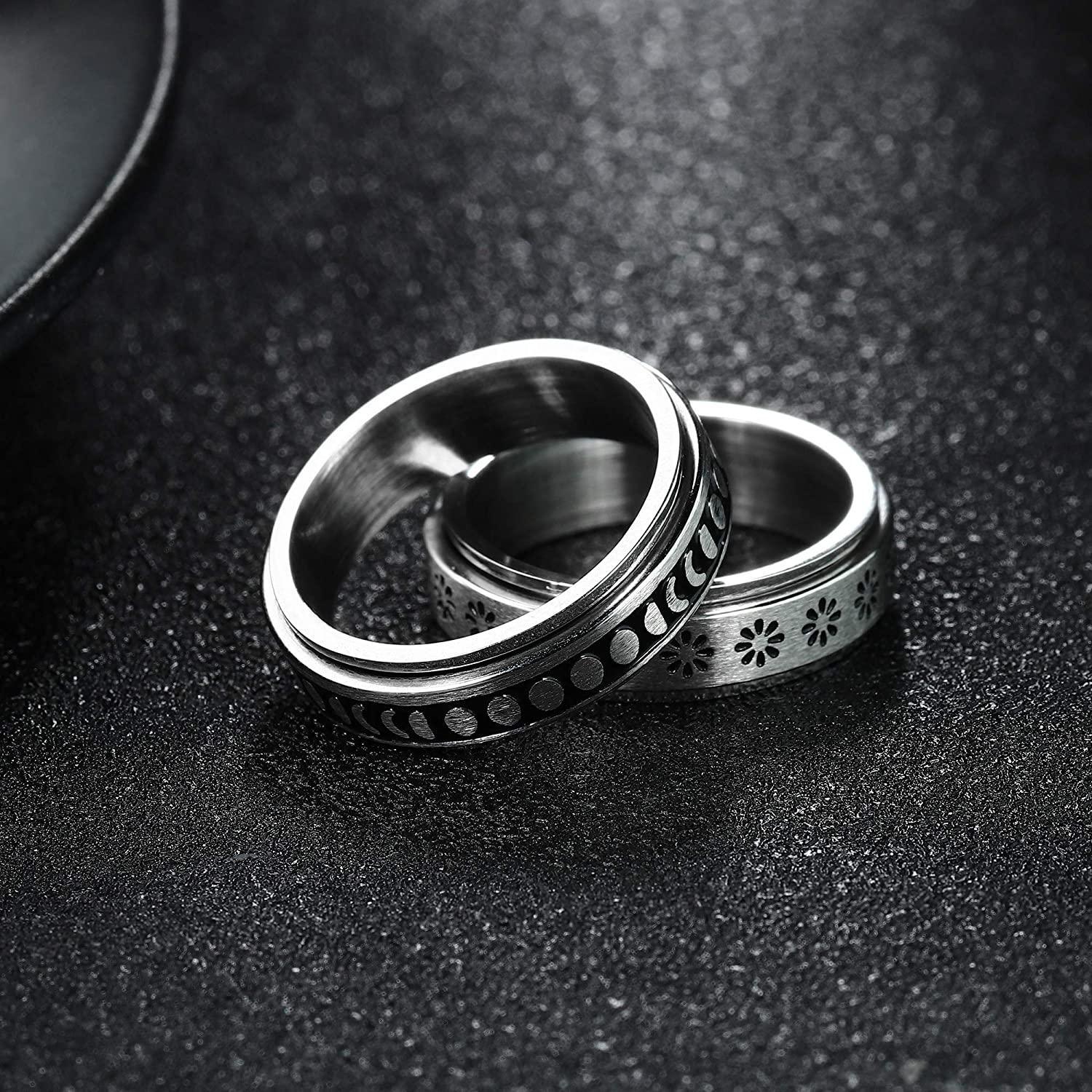HIGH QUALITY MATERIAL-- Our fidget band cool rings are made of quality stainless steel; solid and durable; healthy material; harmless to your body; highly poshlied with rings inner surface; scratch resistant; longer time to wear.The surface smearing effect is more retro and fashionable.