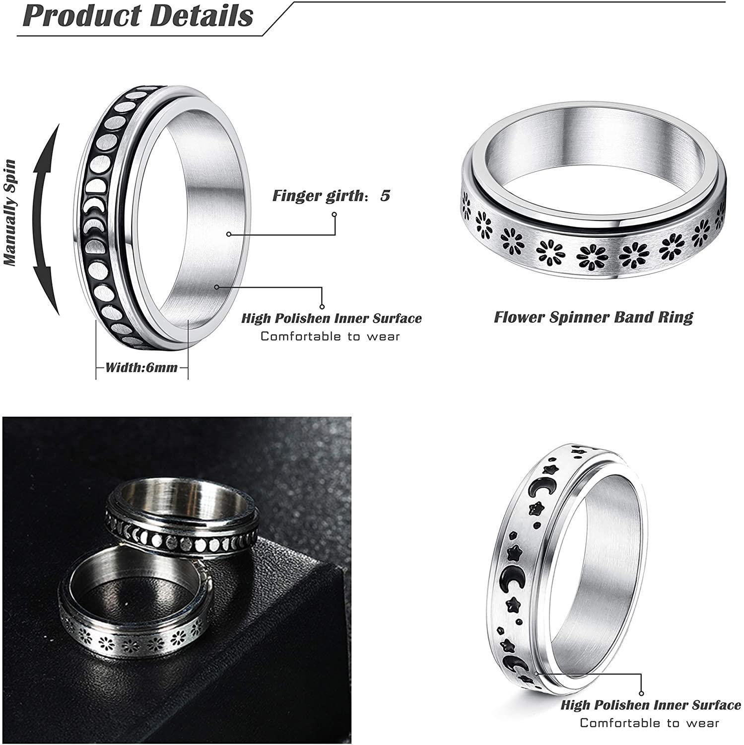 UNIQUE FIDGET RINGS--Spinner design; get you through stress and help reduce anxiety.enhance your mood.Perfect for anyone looking for a nondistracting way to redirect bad habits or get out fidgety energy when you otherwise can't.make you be attractive and unique. Cool and dainty; fidget band rings could be making matching couple ring; wedding ring; engagement ring; promise rings and everyday band rings.