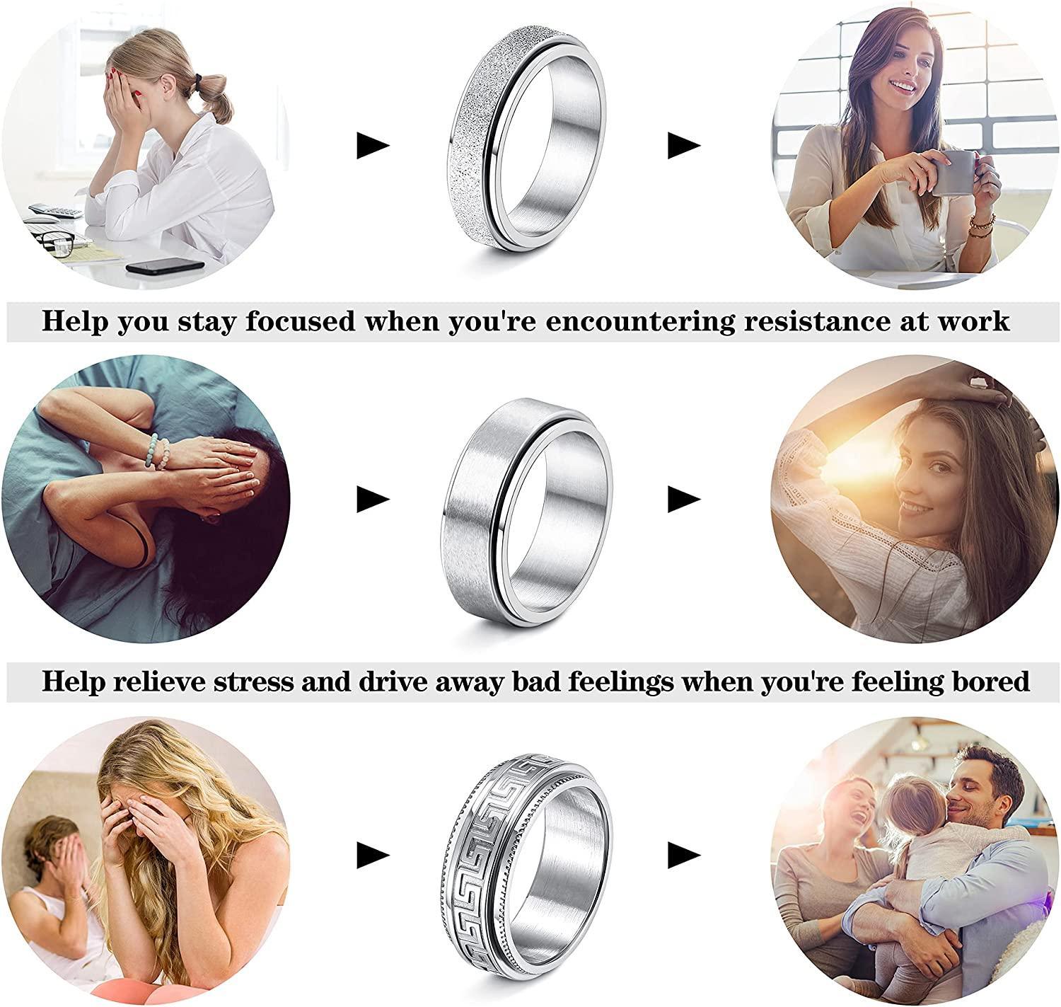 ��PERFECT GIFT�� Our anxiety finger rings come with a exquisite gift package. It is a wonderful gift on Valentine's Day; Christmas; graduation gift; birthday gift; anniversary gift; wedding gift or for yourself; husband; wife; girlfriend; family member. This band spinner ring keeps you entertained.
