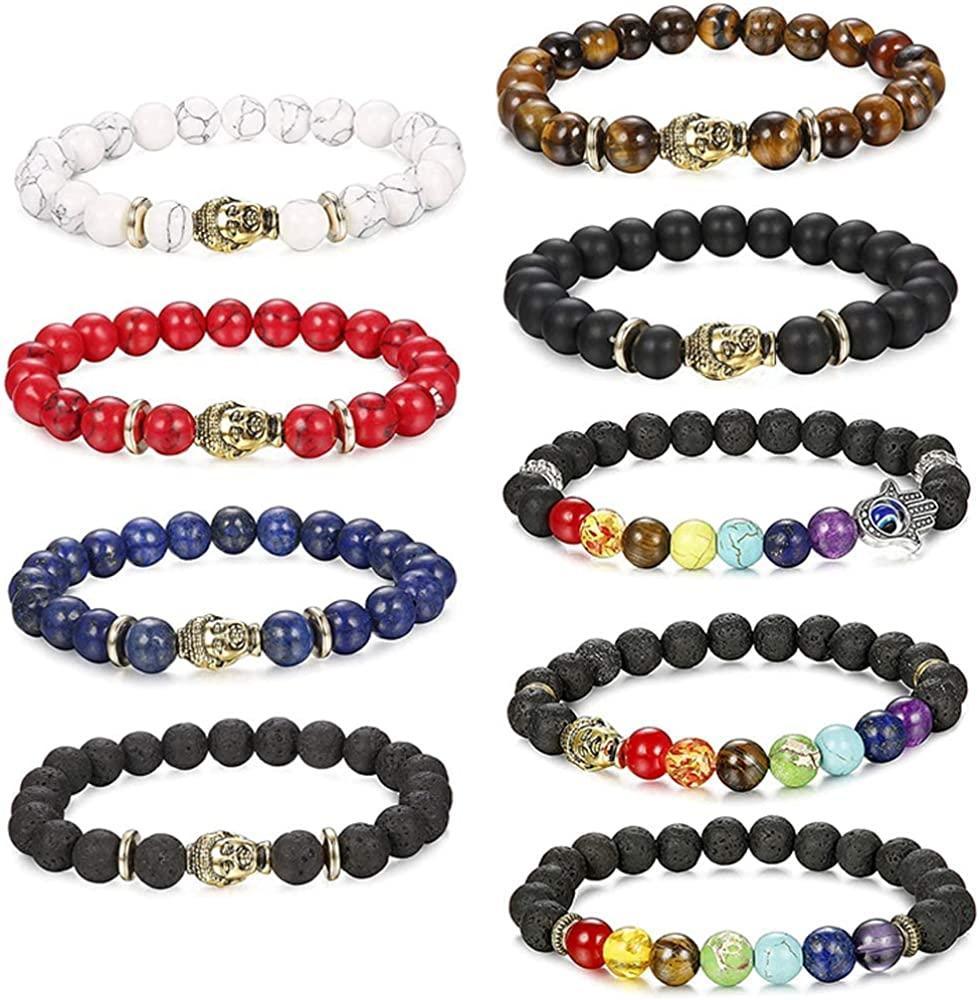 [PACKAGE]-3Pcs 7 chakras healing bracelet; 1Pc tiger eye bead bracelet; 1PC lava stone bracelet; 1PC white turquoise (howlite) stone bracelet; 1PC black matte agate beaded bracelet; 1PC red turquoise stone bracelet; 1PC lapislazuli bead bracelet; enough style allows you to pick one to match the clothing of the day