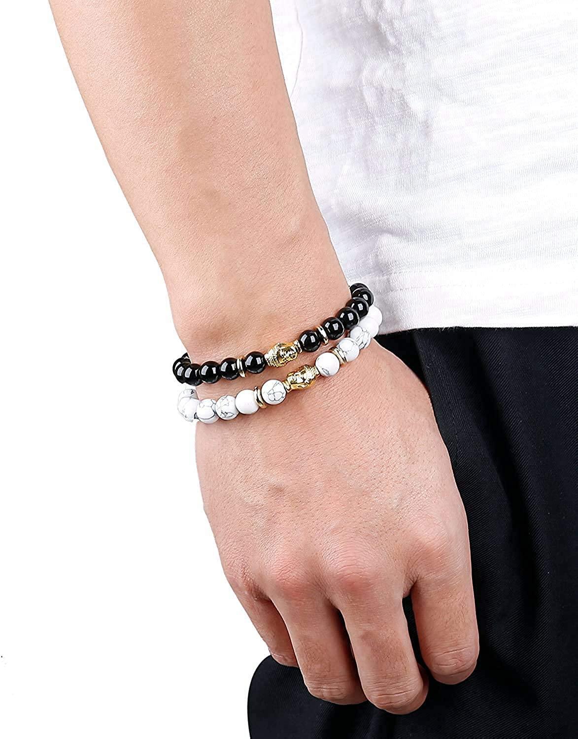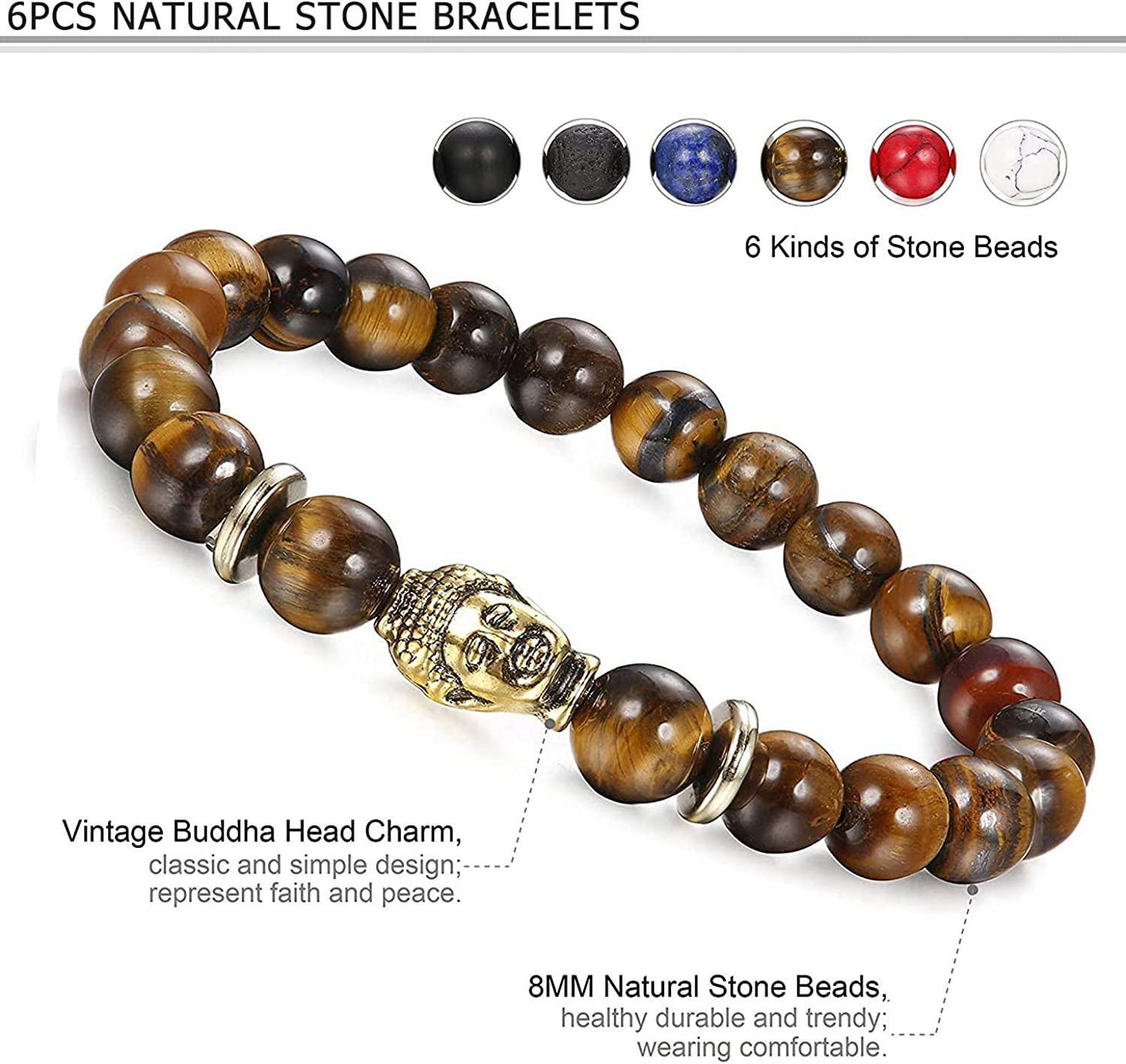 [HIGH-QUALITY MATERIALS]-Natural quality stone beads; retro alloy accessories; the surface retains the natural smooth touch of the stone; which can fit your wrist and give the most comfortable wearing experiences