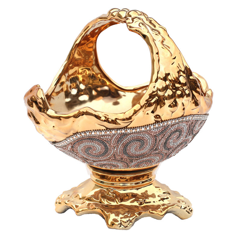 Bring an elegant touch to any tabletop with this beautiful; crystal embellished; luxury fruit platter. Made of chrome-plated ceramic; this fully-functional fruit platter doubles as a decorative accent and is suitable for applications in home and office. The fruit platter features a sturdy base and and makes a perfect gift for friends and family. Wipe clean with a damp cloth. One Year Limited Manufacturer Warranty for defects.