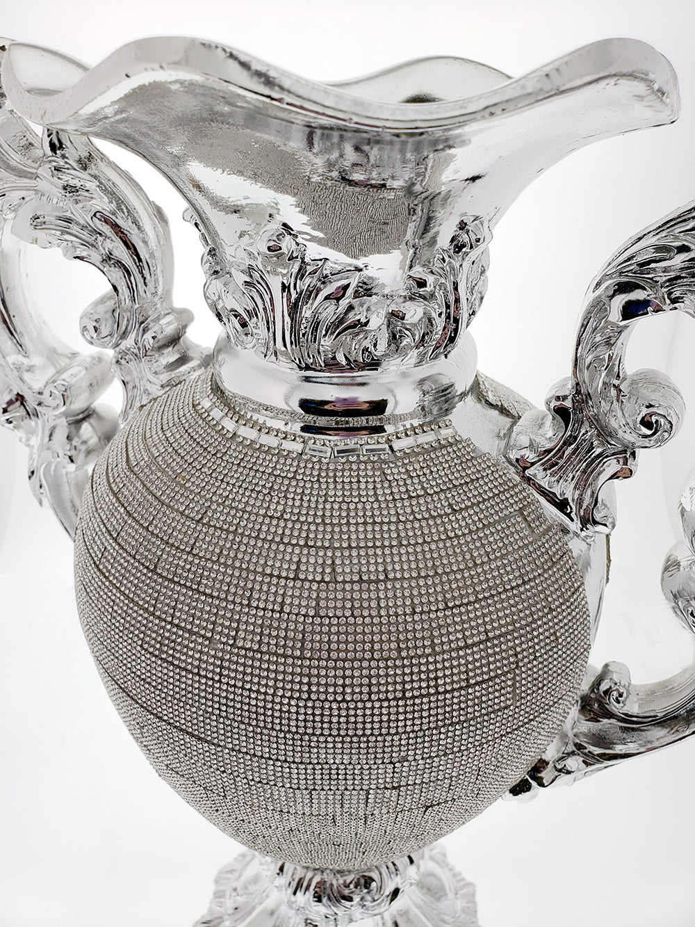 Bring an elegant touch to any tabletop with this beautiful; crystal embellished; decorative vase. Made of chrome-plated ceramic; this luxury accent is suitable for applications in home and office. The vase features a sturdy base and and makes a perfect gift for friends and family. Wipe clean with a damp cloth. One Year Limited Manufacturer Warranty.