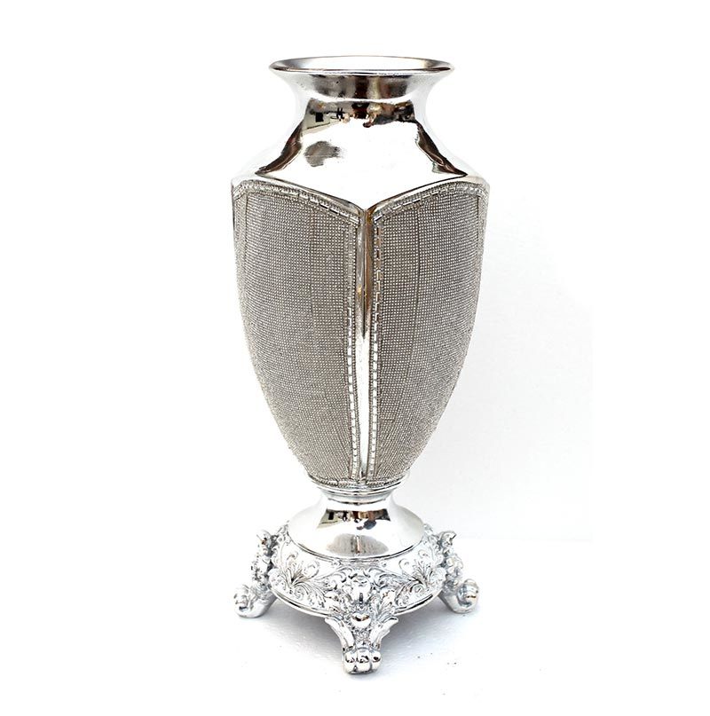 Ambrose Chrome Plated Crystal Embellished Ceramic Vase