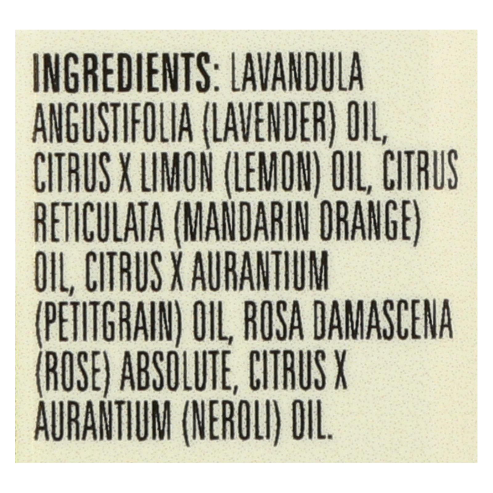 Ingredients: LAVANDULA ANGUSTIFOLIA (LAVENDER) OIL;CITRUS X LIMON (LEMON) OIL;CITRUS RETICULATA (MANDARIN ORANGE) OIL;CITRUS X AURANTIUM (PETITGRAIN) OIL;ROSA DAMASCENA (ROSE) ABSOLUTE;CITRUS X AURANTIUM (NEROLI) OIL