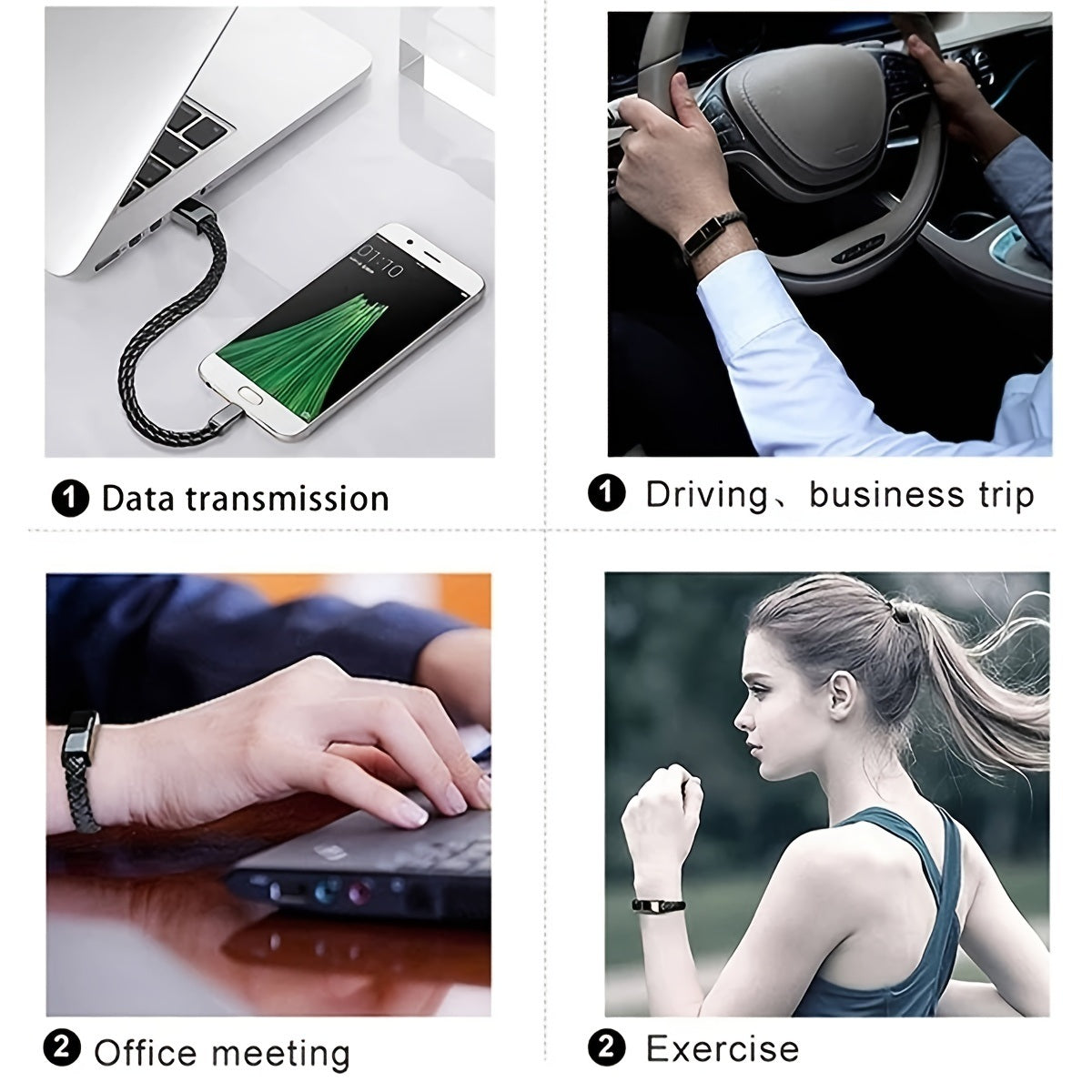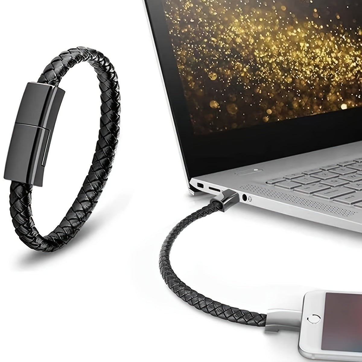 USB Braided Leather Phone Charging Cord Bracelet